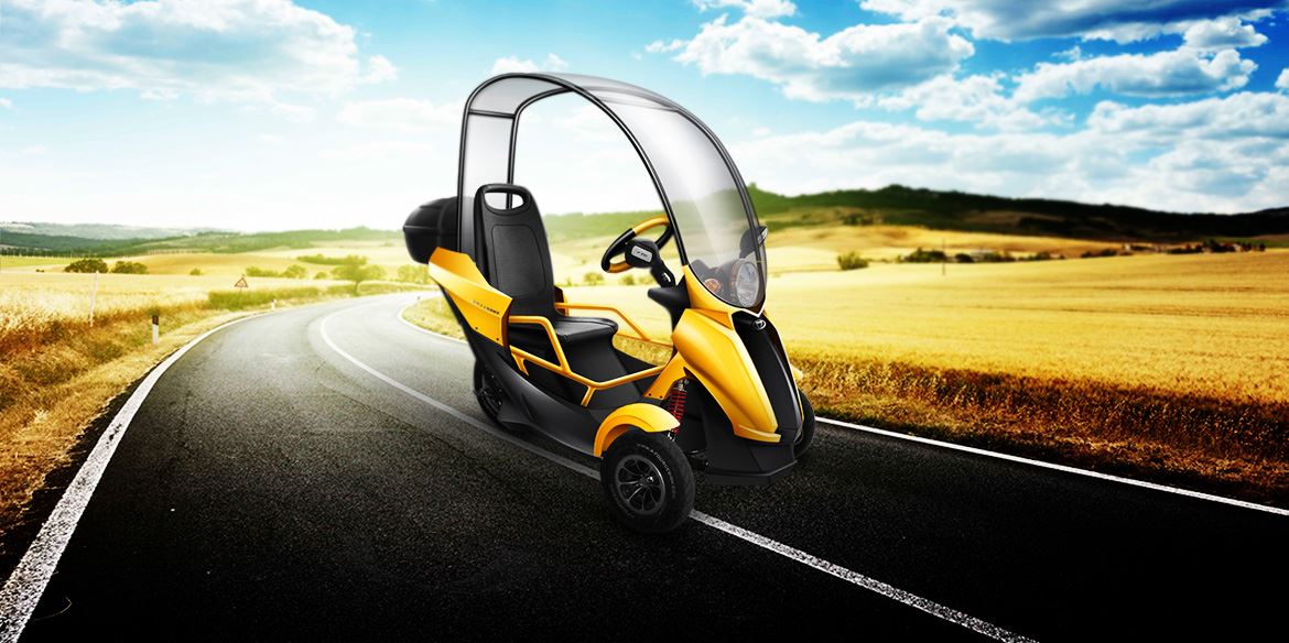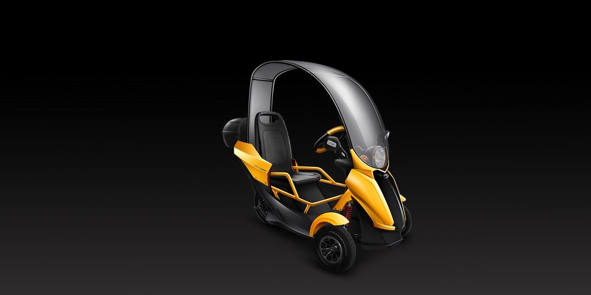 黑色黃色搭配出熱情與速度,黑色與白色摩擦出神秘與溫度。采用三輪設(shè)計(jì),前兩輪,后獨(dú)輪操控轉(zhuǎn)向,整車采用黑黃配色,
